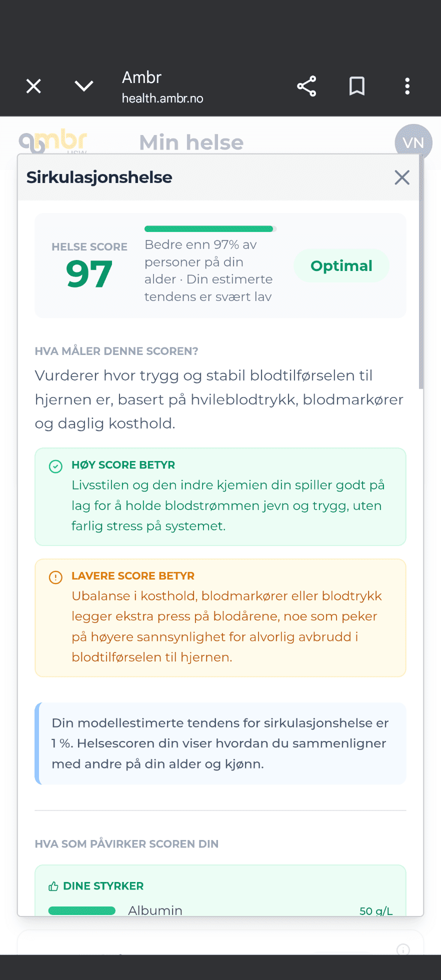 Kombinasjonen av Ambr og legens gjennomgang ga meg en klarhet jeg aldri har opplevd før. For første gang fikk jeg en konkret plan for min egen helse, tilpasset meg.