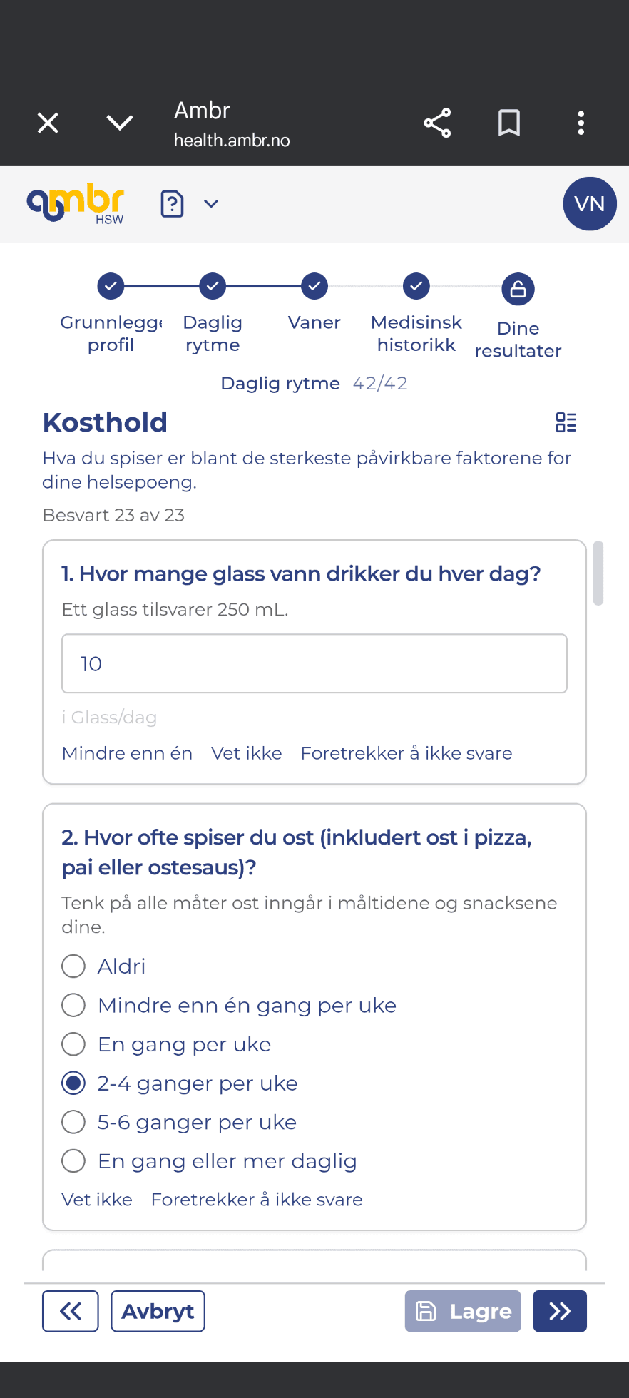 Min første konsultasjon med en Ambr-lege avdekket en viktig helseutfordring som tidligere ikke var fanget opp. Takket være innsikten fra Ambr fikk jeg rask oppfølging og riktig behandling. De følgende Ambr konsultasjonene har fokusert på kosthold og livsstil og jeg har allerede gått ned 10 kg, fått mer energi og blitt sterkere. Målet mitt er nå å være i bedre form i 50-årene enn i 40-årene!